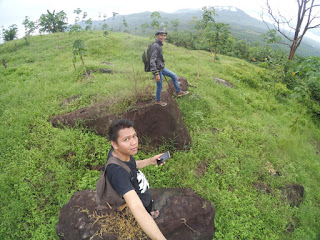 And pas sampai puncak ada belokan kiri - kanan, but kita salah ambil jalan karena melihat yang kanan lebih hijau. Seharusnya kami ambil kiri dan ke tempat yang berbatu + ada benderanya~